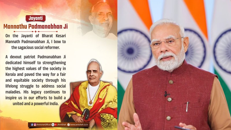 Lucknow, 2 Jan, 2026 06:49 PMNew Delhi | January 2, 2026 Prime Minister Narendra Modi on Friday paid tribute to noted social reformer and freedom fighter Mannathu Padmanabhan on his birth anniversary, remembering him as a visionary leader who devoted his life to social reform, equality, and the dignity of every individual. The Prime Minister said Padmanabhan’s ideals and life’s work continue to inspire efforts toward building a just and compassionate society. In a message shared on social media platform X, Prime Minister Modi said that Mannathu Padmanabhan was a towering personality whose commitment to serving society went beyond words and reflected in action. He described Padmanabhan as a visionary who firmly believed that true progress could only be achieved through dignity, equality, and meaningful social reform. The Prime Minister also noted that Padmanabhan’s contributions in fields such as health, education, and women empowerment remain deeply motivating even today. Several other national and state leaders also paid homage to the renowned reformer. Union Home Minister Amit Shah remembered Padmanabhan as a dedicated patriot and wise social reformer who worked tirelessly to strengthen social values in Kerala. He said Padmanabhan’s efforts played a key role in shaping a more just and equitable society and left a lasting impact on social life in the state. Kerala BJP president Rajeev Chandrashekhar highlighted Padmanabhan’s role as a freedom fighter and as the founder of the Nair Service Society, commonly known as the NSS. He said Padmanabhan’s life and work continue to inspire generations to stand up against social inequality through education, unity, and organised social action. Congress MP Shashi Tharoor also paid tribute, describing Mannathu Padmanabhan as one of the most influential figures in Kerala’s history. He remembered him as a fearless freedom fighter and a committed reformer whose legacy lives on through the institutions he built, especially the NSS, which continues to promote social progress and quality education. Mannathu Padmanabhan, popularly known as Mannam, was born on January 2, 1878, in Perunna near Changanassery in present-day Kerala. His early life was marked by financial difficulties and interruptions in his education. Despite these challenges, he went on to become a teacher and later a lawyer. These experiences deeply shaped his understanding of social injustice and strengthened his resolve to work for reform and equality. In 1912, Padmanabhan founded the Keraleeya Nair Samajam, which later evolved into the Nair Service Society in 1915. While the NSS initially focused on the social and educational upliftment of the Nair community, Padmanabhan’s vision was broader and inclusive. He believed that social reform should benefit society as a whole and contribute to Kerala’s larger social awakening. Padmanabhan played an active role in several major social and political movements. He participated in the Guruvayur Satyagraha of 1931, opposed authoritarian rule in the princely state of Travancore, and later served as a member of the Travancore Legislative Assembly. He also worked to strengthen educational infrastructure by supporting and establishing institutions, including the NSS Engineering College. In recognition of his lifelong service to society, Mannathu Padmanabhan was honoured with the title ‘Bharata Kesari’ and later awarded the Padma Bhushan. He passed away in 1970, but his legacy as a principled leader, institution builder, and social reformer continues to shape Kerala’s public and social life even today. PM Modi Remembers Social Reformer and Freedom Fighter Mannathu Padmanabhan on His Birth Anniversary Prime Minister Narendra Modi paid tribute to renowned social reformer and freedom fighter Mannathu Padmanabhan on his birth anniversary, remembering him as a leader who dedicated his life to equality, dignity, and social change. In a message shared on X, the Prime Minister described Padmanabhan as a visionary who believed that real progress in society is rooted in justice, compassion, and reform. He also highlighted Padmanabhan’s inspiring work in areas such as education, health, and women empowerment. Union Home Minister Amit Shah also paid homage, calling Padmanabhan a true patriot and a wise reformer who worked tirelessly to strengthen social values in Kerala. He said Padmanabhan’s efforts helped lay the foundation for a fair and inclusive society. Kerala BJP president Rajeev Chandrashekhar recalled Padmanabhan’s role as a freedom fighter and the founder of the Nair Service Society, noting that his life continues to motivate people to challenge social inequality through education and organised effort. Congress MP Shashi Tharoor remembered Padmanabhan as a towering figure in Kerala’s history. He described him as a fearless freedom fighter and a committed reformer whose legacy lives on through the Nair Service Society, which continues to support social progress and quality education. Mannathu Padmanabhan, popularly known as Mannam, was born on January 2, 1878, in Perunna near Changanassery in Kerala. Despite facing financial hardship and breaks in his education, he became a teacher and later a lawyer. These experiences shaped his deep concern for social injustice and his lifelong commitment to reform. In 1912, he founded the Keraleeya Nair Samajam, which later became the Nair Service Society in 1915. Though focused on community upliftment, his vision extended to Kerala’s wider social reform movement. He played an active role in the Guruvayur Satyagraha, opposed authoritarian rule in Travancore, served in the Travancore Legislative Assembly, and supported the growth of educational institutions such as the NSS Engineering College. Awarded the Padma Bhushan, his legacy continues to guide generations.