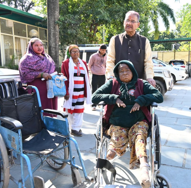 Lucknow, 5 Feb, 2026 06:34 PMदेहरादून, 05 फरवरी। कैबिनेट मंत्री गणेश जोशी ने आज अपने जनता मिलन कार्यक्रम के दौरान आमजन की समस्याओं को सुना। इस दौरान एक गरीब एवं असहाय परिवार के सदस्य मंत्री जोशी से मिलने पहुँचे और उन्होंने अपने बुजुर्ग दिव्यांग परिजन की कठिन परिस्थितियों से अवगत कराया। परिवारजनों ने दिव्यांग बुजुर्ग के लिए व्हीलचेयर उपलब्ध कराने का मंत्री गणेश जोशी से आग्रह किया। परिवार की पीड़ा को समझते हुए कैबिनेट मंत्री गणेश जोशी ने संवेदनशीलता और तत्परता का परिचय देते हुए मौके पर ही नीला 60 वर्ष बुजुर्ग दिव्यांगजन ब्रह्माखाला निवासी को व्हीलचेयर प्रदान की। इसके साथ ही उन्होंने परिवार की आवश्यकता को देखते हुए रसद सामग्री एवं कंबल भी उपलब्ध कराए। मंत्री गणेश जोशी की इस मानवीय पहल से परिवारजनों के चेहरे पर खुशी और राहत दिखाई दी। सहायता मिलने पर परिवार के सभी सदस्यों ने मुस्कान के साथ “थैंक्यू मंत्री जी” कहते हुए कैबिनेट मंत्री गणेश जोशी के प्रति अपना आभार व्यक्त किया।