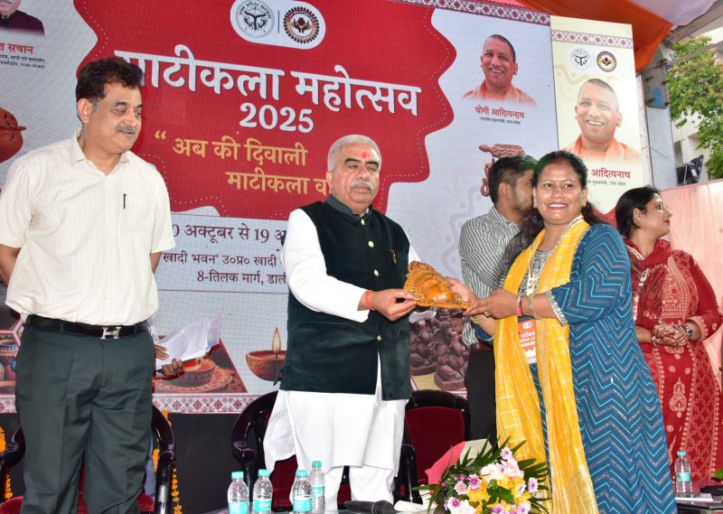खादी भवन में माटीकला महोत्सव 2025 का हुआ शुभारंभ, माटीकला पोर्टल और ई-वेरिफिकेशन मोबाइल ऐप का भी हुआ लोकार्पण, कारीगरों को वितरित किए गए विद्युत चालित चाक, पगमिल और ऋण चेक, दीपावली के अवसर पर 10 दिवसीय माटीकला महोत्सव का आगाज, 50 जनपदीय दुकानों में सजे मिट्टी के आकर्षक उत्पाद